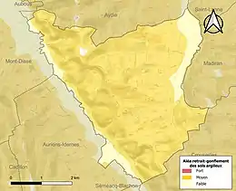 Le retrait-gonflement des sols argileux est susceptible d'engendrer des dommages importants aux bâtiments en cas d’alternance de périodes de sécheresse et de pluie[33]. 88,3 % de la superficie communale est en aléa moyen ou fort (59 % au niveau départemental et 48,5 % au niveau national)[Carte 3]. Depuis le , en application de la loi ELAN, différentes contraintes s'imposent aux vendeurs, maîtres d'ouvrages ou constructeurs de biens situés dans une zone classée en aléa moyen ou fort[Note 4],[34].