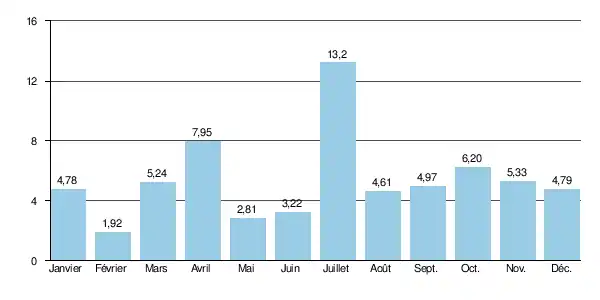 Hydrométrie - Les débits mensuels à la station de Tortugas