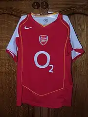 À son arrivée, Herbert Chapman exprime le souhait que ses joueurs soient plus distinctement habillés. Il fait coudre l'écusson sur le maillot, en fait changer la couleur pour un rouge plus clair, puis fait ajouter un col et des manches blancs[18]. En 1964, un maillot complètement rouge est essayé mais, devant les réactions négatives des supporters, les manches blanches font leur retour dès la saison suivante. Le temps de la dernière saison d'Arsenal à Highbury, en 2005-2006, l'équipe adopte un maillot reprenant la couleur pourpre des débuts.
