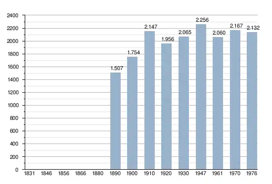 - Sources:INS, Rem:1831 jusqu'en 1970=recensements, 1976= nombre d'habitants au 31 décembre