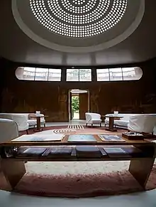 Deux tendances différentes coexistent dans cet ensemble d'architecture, de fabrication de mobilier et d'aménagement d'intérieur :