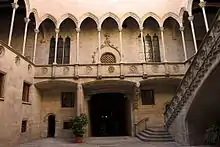 De superbes cathédrales sont érigées, comme celles de Barcelone, Tarragone, Gérone, Manresa, Solsona, Tortosa, etc., de même que de grandes églises comme Sainte-Marie-de-la-Mer et Santa Maria del Pi à Barcelone, la basilique Santa Maria de Vilafranca del Penedès (ca), l'église Saint-Jean-le-Vieux de Perpignan, celle du monastère de Pedralbes, etc. [47]. L'architecture civile connaît elle aussi un épanouissement notable, surtout dans les palais et les édifices publics, comme le Grand Palais royal (ca), le Palais de la généralité, l'Hôpital de la Sainte-Croix, les Arsenaux royaux, la Loge de mer et l'hôtel de ville (ca) à Barcelone[47].