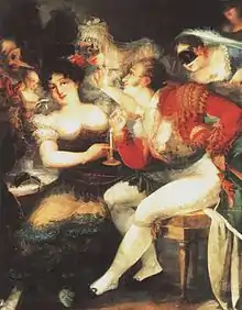 Le premier représentant de la peinture romantique est Lluís Rigalt (ca), fils d'un paysagiste néoclassique, dont l’œuvre regroupe des tableaux, mais aussi des dessins, des gravures, des lithographies, etc. ; on remarquera notamment sa peinture à l’huile Montagne de Montserrat. Le mouvement allemand des Nazaréens recueillit en Catalogne un écho notable ; il défendait et imitait le style des maîtres italiens du XVe siècle antérieurs à Raphaël, qui, pour eux, représentaient l’idéal du purisme artistique[81]. Le théoricien du mouvement était Pau Milà i Fontanals (ca) et il convient de citer comme artistes s’étant particulièrement distingués Claudi Lorenzale (auteur de l'Origine de l’écu du comté de Barcelone, 1843-1844) et Pelegrí Clavé (Le Bon samaritain, 1839)[82].