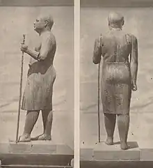 Les statues de particuliers sont généralement de plus petite taille, à l'exception du groupe de Sépa et Nésa. Si celles de la IVe dynastie possèdent plutôt un visage globulaire et un corps musclé, la tendance sous la Ve dynastie est au réalisme. Le visage quant à lui se doit d'être assez fidèle au modèle, car il contient une réalité magique : enfermées dans un serdab, les statues sont censées recevoir le Ba, l'âme du défunt, en quelque sorte. On remarque les traces de fard vert sous les yeux de la jeune femme : cette couleur est caractéristique des maquillages de la troisième dynastie. Ensuite, les fards prendront la couleur noire (khôl).