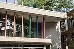 | Villa-Maria | Orange | Léonard, André | Cercles | 1981 | Béton polymère, acier inoxydable | Deux murales constituées de cercles en béton polymère colorée évoquant des cadrans en rotation. | ![]() |