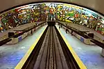 | Peel | Verte | Mousseau, Jean-Paul | Cercles | 1966 | Céramique | Des lunes composées de lamelles de céramique vernissée et vivement colorées sont disposées partout dans la station, tant sur les murs que sur le sol. | ![]() |