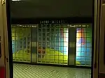 | Saint-Michel | Bleue | Cardinal, Marcelin; Lemay, Charles; Marois, Lauréat; Moffat, Normand | Murales | 1986 | Panneaux de fibrociment peints, blocs de verre | Quatre œuvres par quatre peintres sont disposées sur les quais et protégées par des blocs de verre qui rappellent l'architecture du quartier. | ![]() |