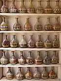 L'art traditionnel était souvent basé sur la culture matérielle, notamment l'artisanat tel que la fabrication de tapis, le tissage et la vannerie, l'orfèvrerie, la mosaïque, la céramique et le soufflage du verre. Les Bédouins étaient largement autosuffisants dans la production de biens, et fabriquaient leurs propres tapis, tressaient des paniers et préparaient des céramiques. Ces œuvres présentaient une grande diversité de styles, les tribus utilisant souvent leurs propres motifs tribaux[6].