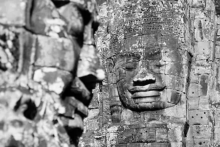 On taillait la pierre de certaines statues à proximité des capitales, d'où venaient les commandes. Pour une commande précise, un certain grès moucheté fut utilisé pour répandre jusqu'aux confins de l'empire l'image de Jayavarman VII, le roi bouddhiste qui fit élever les tours à visages du Bayon[57].