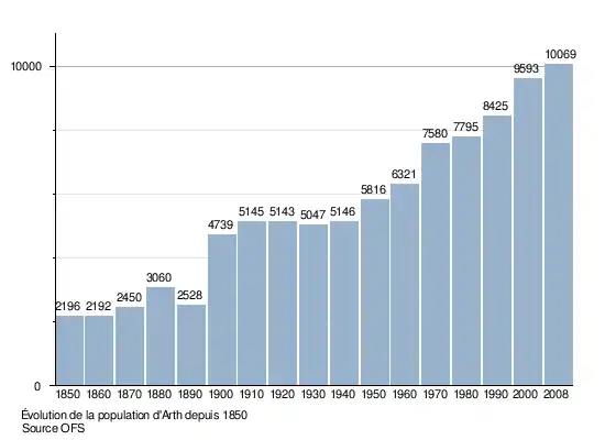 Le graphique suivant résume l'évolution de la population d'Arth entre 1850 et 2008[7] :