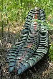 Des empreintes fossilisées d'Arthropleura ont été également découvertes, celles-ci apparaissent sous la forme de longues rangées parallèles de petits caractères, qui montrent que ce diplopode se déplaçait rapidement à travers le sol des forêts, faisant un écart pour éviter des obstacles tels que des arbres ou des rochers. Ses traces portent le nom d'ichnotaxon connu sous le nom de Diplichnites (en)[8],[9]. D'autres empreintes fossiles d'Arthropleura atteignant jusqu'à 50 cm de large ont été trouvées à Joggins (en), en Nouvelle-Écosse[10].
