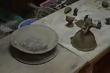 Une exception à la spécialisation à un type d'artisanat est la ville d'Ocotlán de Morelos, située au sud de la ville d'Oaxaca. L'artisanat le plus connu de la ville est la poterie, dont la fabrication est dominée par les femmes[25]. Les potiers les plus connus sont les Aguilar, dominés par les sœurs Josefina, Guillermina, Irene et Concepción qui créent des figurines fantaisistes multicolores[26].