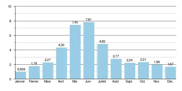 Son débit d'étiage QMNA lors d'une quinquennale sèche a été calculé à 0,742 m3/s (calcul sur huit ans), soit 22 % du module[2].
