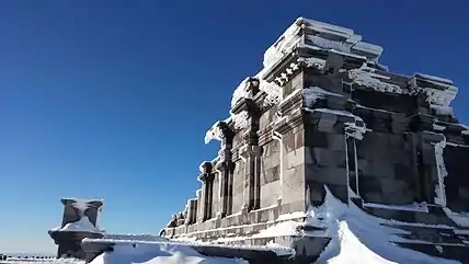 Durant le Ier siècle, la cité se dote d'un riche temple dédié à Mercure, qui correspond sans doute à celui dont les restes furent retrouvés au sommet du puy de Dôme. Ce temple continue donc la tradition religieuse attachée au lieu déjà utilisé par le culte druidique arverne. Une des inscriptions votives trouvées dans ce temple, sur plaque de bronze, est dédiée plus précisément à Mercure Dumias[32]. Dieu des voyageurs, Mercure protégeait la voie romaine d'Agrippa de Lyon à Saintes qui franchissait la chaîne des Dômes au pied du puy de Dôme, ainsi que l'attestent quatre statues du dieu découvertes au long de la voie sur dix kilomètres de son trajet de part et d'autre du col de Ceyssat.