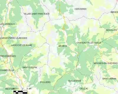 Arvieux est une commune rurale[Note 2],[7]. Elle fait en effet partie des communes peu ou très peu denses, au sens de la grille communale de densité de l'Insee[8],[9]. La commune est en outre hors attraction des villes[10],[11].