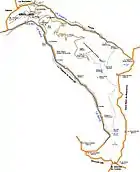 - Détrier (du Bens 1 600 m env. en aval de Pont de Bens à l’ermitage (400 m à l'ouest du Mont Pezard), versant nord du Mont Pezard jusqu’au virage sur la route de La Rochette).