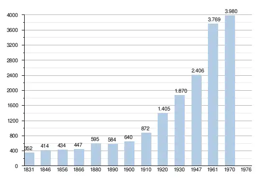 En tenant compte des anciennes communes entraînées dans la fusion de communes de 1977, on peut dresser l'évolution suivante[4] :