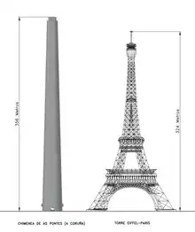 Cheminée de la centrale électrique d'As Pontes, Espagne. Comparaison avec la Tour Eiffel à Paris.