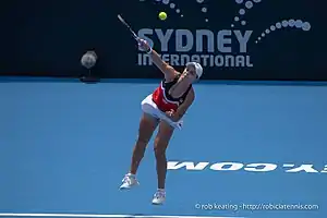 Lors de l'US Open, Barty débute par des succès rassurants, dominant Zarina Diyas au premier tour (1-6, 6-3, 6-2), puis Lauren Davis (6-2, 7-62) au second et enfin María Sákkari, sur le score de (7-5, 6-3). Qualifiée pour les huitièmes de finale face à Wang Qiang, l'Australienne ne parvient pas à trouver ses marques ni dicter son jeu, et au terme d'une rencontre ponctuée de trente-neuf fautes directes, elle s'incline nettement (2-6, 4-6)[50]. En dépit de cet échec, Barty est assurée de retrouver son rang de numéro un mondiale à la suite de la défaite d'Osaka[51]. Bien qu'éliminée en simple, elle réalise un parcours plus que convaincant en double dames, associée à la Biélorusse Victoria Azarenka, les deux jeunes femmes atteignant la demi-finale de la compétition après avoir écarté au tour précédent la paire composée de Timea Babos et Kristina Mladenovic. Victorieuses de Viktória Kužmová et Aliaksandra Sasnovich sur le score de 6-0, 6-1, elles participent à la finale, la seconde consécutive pour l'Australienne dans ce tournoi et dans cette catégorie. Opposées à la paire composée d'Elise Mertens et Aryna Sabalenka, elles s'inclinent finalement (5-7, 5-7).