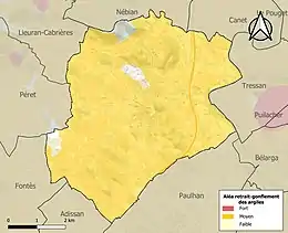 Le retrait-gonflement des sols argileux est susceptible d'engendrer des dommages importants aux bâtiments en cas d’alternance de périodes de sécheresse et de pluie. 96,3 % de la superficie communale est en aléa moyen ou fort (59,3 % au niveau départemental et 48,5 % au niveau national). Sur les 762 bâtiments dénombrés sur la commune en 2019, 762 sont en aléa moyen ou fort, soit 100 %, à comparer aux 85 % au niveau départemental et 54 % au niveau national. Une cartographie de l'exposition du territoire national au retrait gonflement des sols argileux est disponible sur le site du BRGM[19],[Carte 2].