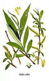 L'écorce de saule est connue au moins depuis l'Antiquité pour ses vertus curatives. On a trouvé la mention de décoctions de feuilles de saule dans un papyrus égyptien dès 1550 av. J.-C. (papyrus Ebers)[15]. Le médecin grec Hippocrate (460-377 av. J.-C.) conseillait déjà une préparation à partir d'écorce de saule blanc pour soulager les douleurs et les fièvres[16],[17]. De même, le médecin et pharmacologue grec Dioscoride (25 - 90 ap. J.-C.) en conseillait l'usage pour les douleurs auriculaires, dans sa Matière médicale (De materia medica) au premier siècle[18].