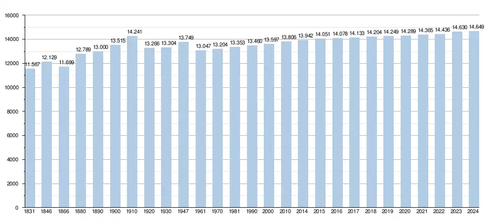 - Source : DGS - Remarque: 1831 jusqu'à 1981=recensement; depuis 1990=nombre d'habitants chaque 1er janvier[3]