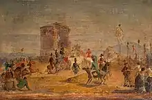 La coutume est parmi les artistes d'accueillir les nouveaux arrivants au pont Milvius, le Ponte Molle, et lui donner un tonneau de vin. Au cours de l'institutionnalisation d'un festival printanier d'artistes germanophones, la Société Ponte-Molle est créée en 1813, les membres adoptent les mœurs d'un ordre chevaleresque pour le plaisir. Elle se fait rapidement connaître en organisant chaque année autour du 1er mai un défilé carnavalesque dans la campagne romaine pour les anciennes carrières de travertin sur les rives de l'Aniene à Tor Cervara (Torre Cervaro). Des membres de la société organisent aussi un fonds d'aide pour les artistes allemands pauvres.