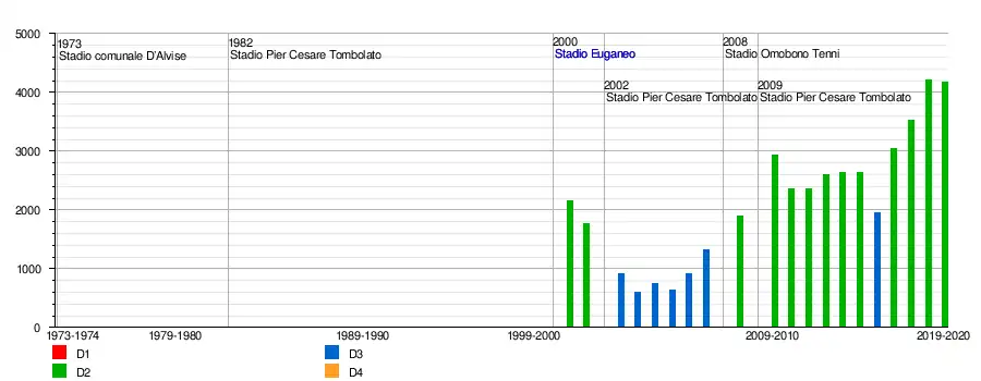 | 2000-2002 | Stadio Euganeo | Padoue |