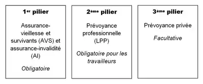 Il s'agit d'un système de retraite par répartition, la loi sur la prévoyance professionnelle (2e pilier) étant un système de retraite par capitalisation. L'AVS permet également une redistribution (partielle) des richesses[2]. Selon l'Office fédéral des assurances sociales, l'AVS est « la branche la plus importante du système suisse des assurances sociales »[3].