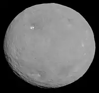 Un astéroïde (du grec ancien ἀστεροειδής / asteroeidḗs, « qui ressemble à une étoile »[1],[2]) est une planète mineure composée de roches, de métaux et de glaces, et dont les dimensions varient de l'ordre du mètre (limite actuelle de détection) à plusieurs centaines de kilomètres. L'appellation « en forme d'étoile » vient de l'aspect irrégulier des astéroïdes au télescope, différent du disque parfait des planètes, lors des premières observations astronomiques.