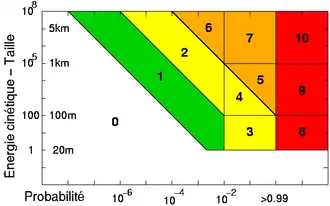 Les orbites de ces objets n'étant connues qu'avec une incertitude non négligeable, le risque est évalué à travers un calcul de probabilité. Deux échelles normalisées permettent de quantifier ce risque, l'échelle de Palerme et l'échelle de Turin. Cette dernière, reconnue par l'Union astronomique internationale depuis 1999 et couramment utilisée dans les articles de vulgarisation, quantifie le niveau de risque de 0 à 10 en croisant une estimation de la probabilité d'impact et une estimation de l'énergie d'impact. Ces évaluations évoluent en permanence en fonction des réévaluations régulières des orbites. Plusieurs institutions et programmes d'observation étudient ce risque en continu. L’agence spatiale européenne (ESA), par exemple, a initié en 2004 un projet à long terme de protection de la Terre contre les géocroiseurs.