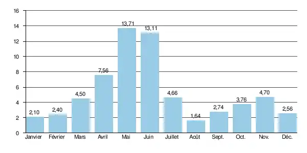Le module de la rivière à Larcat est de 5,29 m3/s.
