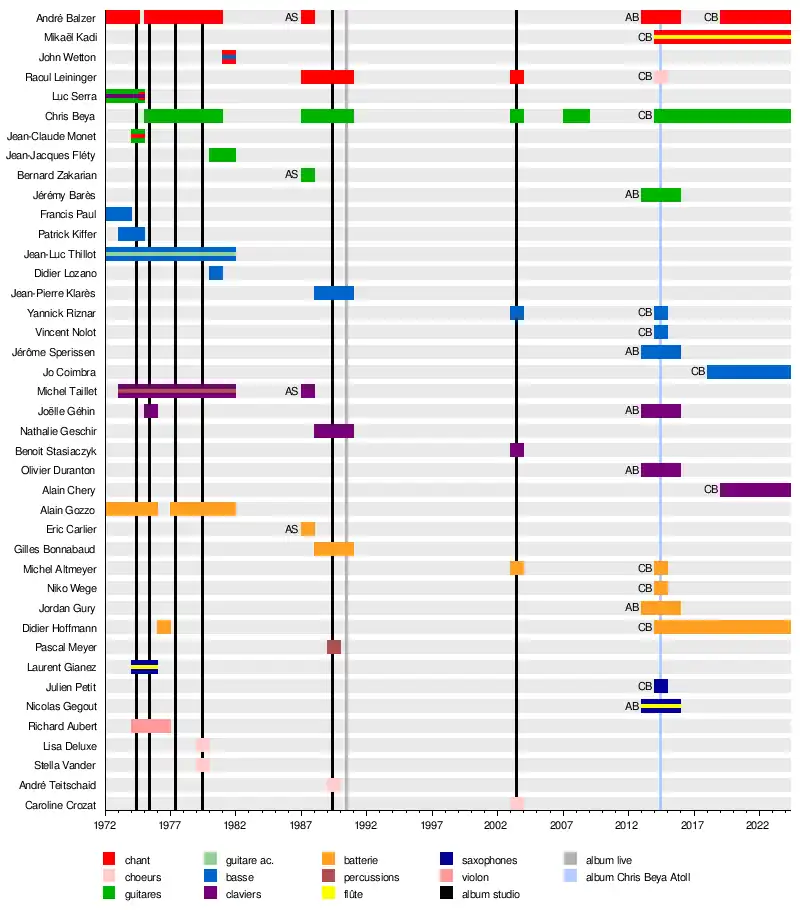 - Chris Beya - guitare, chœurs, claviers, basse (1975-1981, 1987-1990, 2003, 2007-2008, depuis 2014) (albums 2 à 8)