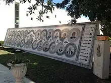 Ce défilé officiel longe l'enceinte où se trouvent le Parlement et le musée du Bardo en scandant le slogan « Le Monde est Bardo »[41] en référence à « Je suis Charlie ». Les dignitaires inaugurent ensuite une stèle portant les noms des victimes.