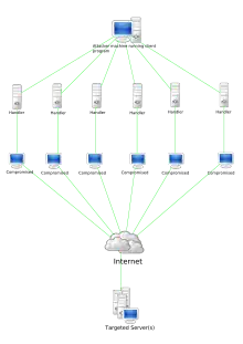 Le principe est d'utiliser plusieurs sources (daemons) pour l’attaque et des maîtres (masters) qui les contrôlent.