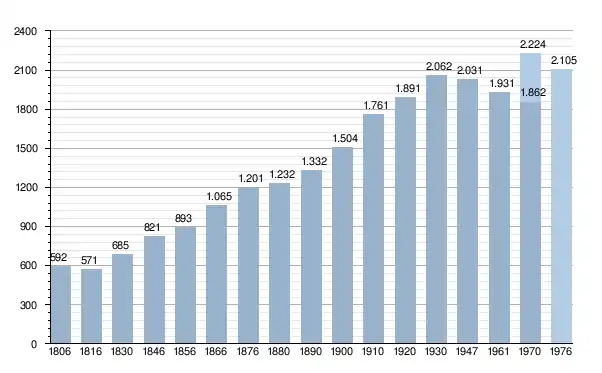 - Sources : INS, Rem. : 1831 jusqu'en 1970 = recensements, 1976 = nombre d'habitants au 31 décembre.