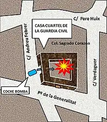 - (ca)/(es) Cet article est partiellement ou en totalité issu des articles intitulés en catalan « Atemptat de Vic de 1991 » (voir la liste des auteurs) et en espagnol « Atentado contra la casa cuartel de Vich » (voir la liste des auteurs).