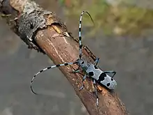 Les espaces forestiers sont moins représentés en Aubrac que les milieux ouverts[Note 7], mais n’en constituent pas moins des milieux importants en termes de faune. Les futaies âgées sont favorables au pic noir[26] ou au pic mar[27], la chouette de Tengmalm[28] profite des cavités creusées par le pic noir pour y établir son nid, et plusieurs espèces de chauves-souris potentiellement tributaires des cavités naturelles des vieux arbres pour leur reproduction, ont été observées lors d'une étude qui leur a été consacrée en 2014[29]. La rosalie des Alpes, coléoptère en déclin sur les sites faisant l’objet d’une gestion forestière intensive, est présente en Aubrac à la faveur du bois mort des hêtraies évoluées [30].