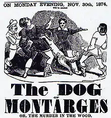 - [Pixérécourt 1814] René-Charles Guilbert de Pixérécourt, Le chien de Montargis ou la forêt de Bondy: mélodrame historique en 3 actes (représenté pour la première fois, à Paris, sur le Théâtre de la Gaité, le 18 juin 1814), Paris, libr. Barba, , 2e éd., 64 p., sur books.google.fr (lire en ligne).