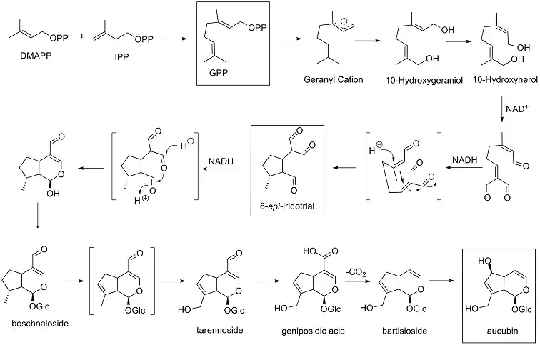 | Nom UICPA | (2S,3R,4S,5S,6R)-2-[-(1S,4aR,5S,7aS-5-hydroxy-7-(hydroxyméthyl-1,4a,5,7a-tétrahydrocyclopenta-[c]-pyran-1-yl]-oxy]-6-(hydroxyméthyl)-oxane-3,4,5-triol |