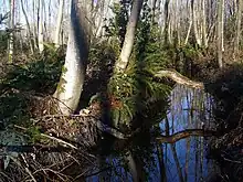 En réponse à l'ennoyage, l'aulne développe des racines adventives.