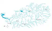 D'amont vers l'aval (la longueur exprimée en km des cours d'eau correspond aux chiffres du SANDRE) :