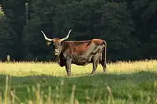 L'aurochs de Heck (nom vernaculaire français)[1], ou « néo aurochs » ou « aurochs-reconstitué » selon son nom officiel pour la Commission nationale d'amélioration génétique (code de race no 30), est issu d'une sélection de races bovines domestiques menée en Allemagne dans les années 1920 et 1930 par le biologiste Lutz Heck et son frère Heinz, biologiste, directeur du zoo de Munich[2]. Ce mélange visait à recréer le phénotype sauvage des bovins domestiques, le plus proche possible de l'aurochs originel Bos primigenius. L'idée viendrait du zoologiste polonais Feliks Paweł Jarocki[3].