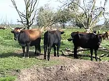 La domestication de l'aurochs sauvage, Bos primigenius, remonterait de 6 500[20] à 8 000 ans av. J.-C., au Moyen-Orient puis en Inde[21].