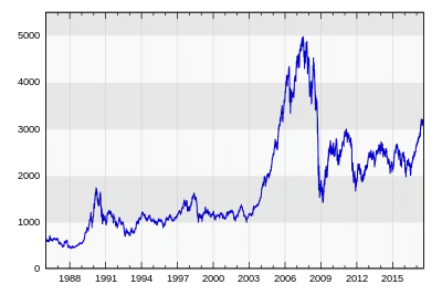 Évolution de l'indice ATX depuis 1986.