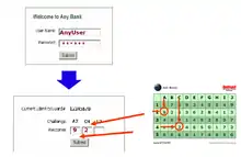 - L'authentification à carte matricielle (ou Matrix card authentication). Il s'agit de rentrer un OTP provenant d'une carte matricielle fournie. Ce système utilise les coordonnées en Y et X. La carte matricielle est considérée comme un authentifieur.