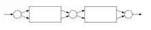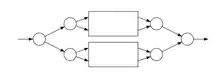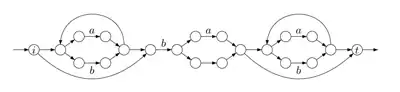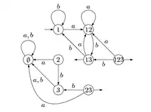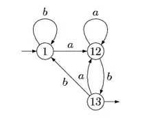 L'automate a pour états les états de et de . Les états initiaux sont ceux de , les terminaux sont ceux de . Les transitions sont celles de et de , et de plus des -transitions des états terminaux de vers les états initiaux de - automate pour l'étoile :
