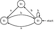 Soit un automate fini (déterministe ou non déterministe) où et sont les états initiaux et terminaux et où est l'ensemble des transitions.
