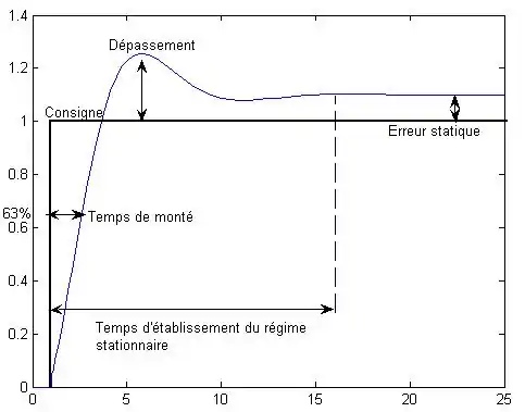- la poursuite (la température du four doit atteindre la température en consigne, on peut spécifier dans le cahier des charges si on a des contraintes de rapidité ou de dépassement),