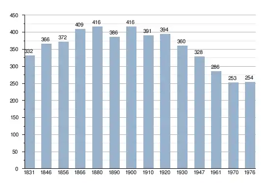 - Sources : INS, Rem. : 1831 jusqu'en 1970 = recensements, 1976 = nombre d'habitants au 31 décembre.